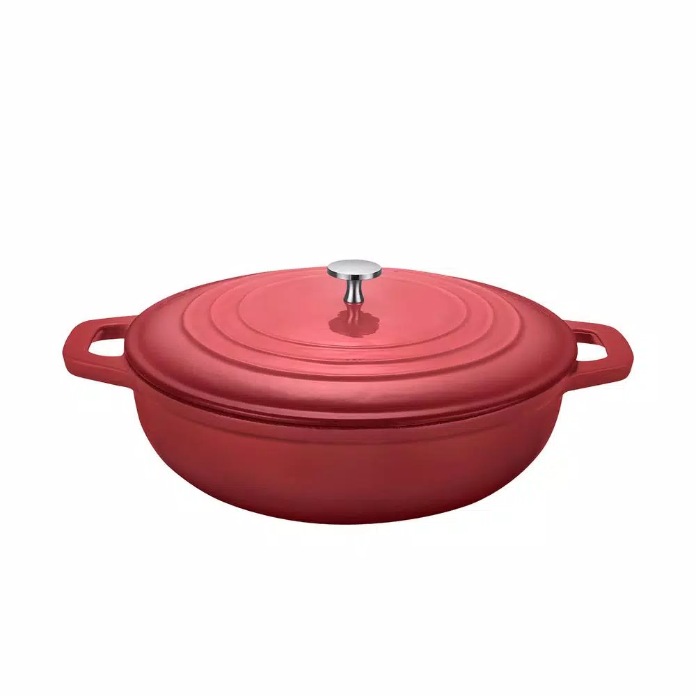 12 in. casserole pan of cast iron coated in durable, beautiful enamel. Enamel cookware is a kitchen classic, while cast iron is a renowned cooking staple. Thanks to the combination of high-quality materials and a metal knob, this range is suitable for use on the stovetop (all cooking surfaces) as well as in the oven. For roasting, stewing and more, use the lid to seal in flavor, moisture, and nutrients. Cast iron offers excellent heat retention, and therefore is energy efficient, while porcelain enamel resists sticking and is an easy-clean surface. Our cookware is BPA free, with abrasion resistance and corrosion resistance to ensure many years of stovetop and oven use. Suitable for all hobs and ranges, including induction heating. Dishwasher use is possible, but hand washing is recommended to keep the appearance like new. Length 14 in. x W 13 in. x H 9.44 in. This product comes with a 2-year manufacturer warranty.