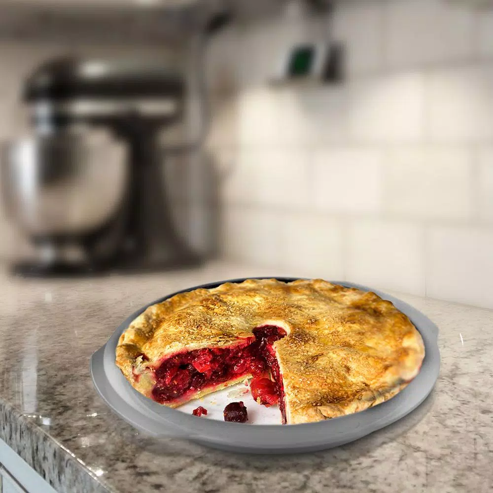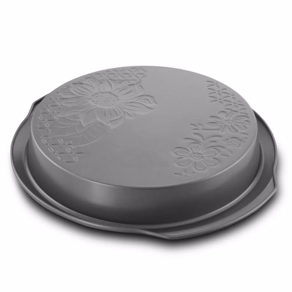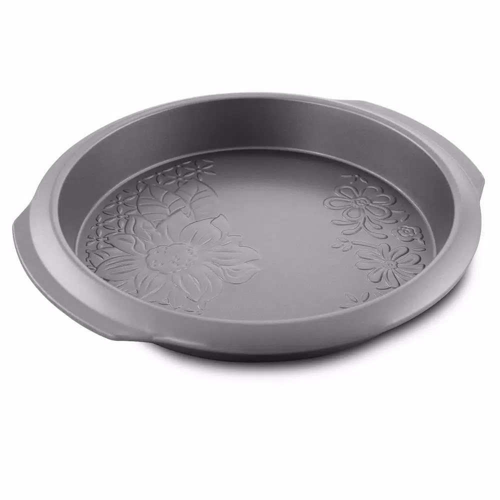 Gibson Country Kitchen 9inch Cake Pan Round Silver Embossed Carbon Stee Non-Stick Bakeware is ideal for today’s cooks. The full line is constructed of heavy gauge aluminized steel to provide even heat distribution and consistent baking results. The nonstick interior and exterior ensure easy food release and cleanup, and extra-thick rolled edges prevent warping. Hand wash Only