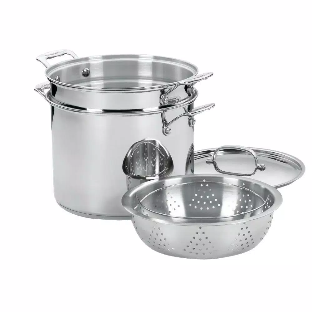 The kitchens of France were the inspiration behind the elegant Cuisinart Chef’s Classic Stainless Cookware Collection. Chef’s Classic features stainless steel and pure aluminum encapsulated in the base for fast and even heating. We guarantee it with a lifetime warranty. The 77-412 12 Qt. pasta/steamer set is great for classic cooking techniques like slow simmers, rolling boils and reduction of liquids.