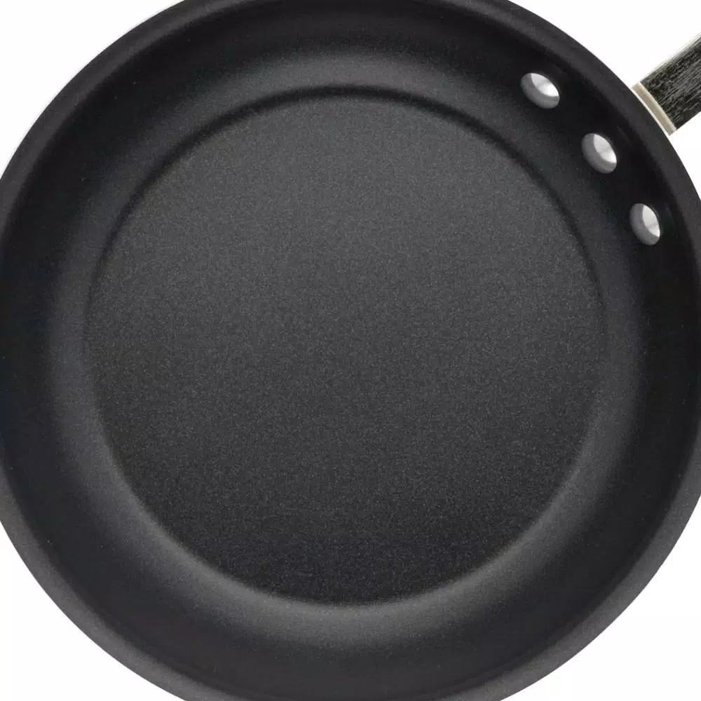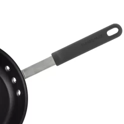 Boasting industrial strength and professional styling, this Farberware Restaurant Pro Aluminum Nonstick 8-Inch Frying Pan offers restaurant-quality cooking performance right at home. Sure to become the go-to frypan for every meal, this versatile skillet is ideal for creating a turkey sausage scramble, sautéing zucchini and garlic, or pan-searing scallops and asparagus. Its fast, even heat distribution and durable nonstick coating are the results of NSF Certification, guaranteeing the highest construction and performance standards. The frying pan’s long-lasting, top-quality nonstick interior has added scratch resistance for quick food release and easy cleanup, even after cooking sliders with melted Swiss cheese. A comfortable rubberized handle offers a confident grip all around the kitchen, and the nonstick frypan is oven safe to 400°F. This hard-working skillet is a welcome addition to every kitchen and complements many cookware sets, stockpots and other items in the Farberware collection. Rely on the superior-quality performance of the Farberware Restaurant Pro Aluminum Nonstick 8-Inch Frying Pan to create delicious, restaurant-worthy fare at home.