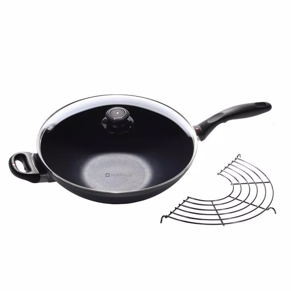 The newest addition to our wok family, this 30 cm beauty boasts a helper handle molded right into the design. Great Chinese kitchens helped to design the Swiss Diamond 30 cm wok. This wok holds 4.9 Qt. and combines the easy clean-up and healthy cooking abilities of nonstick cookware with the traditional benefIt’s of woks.