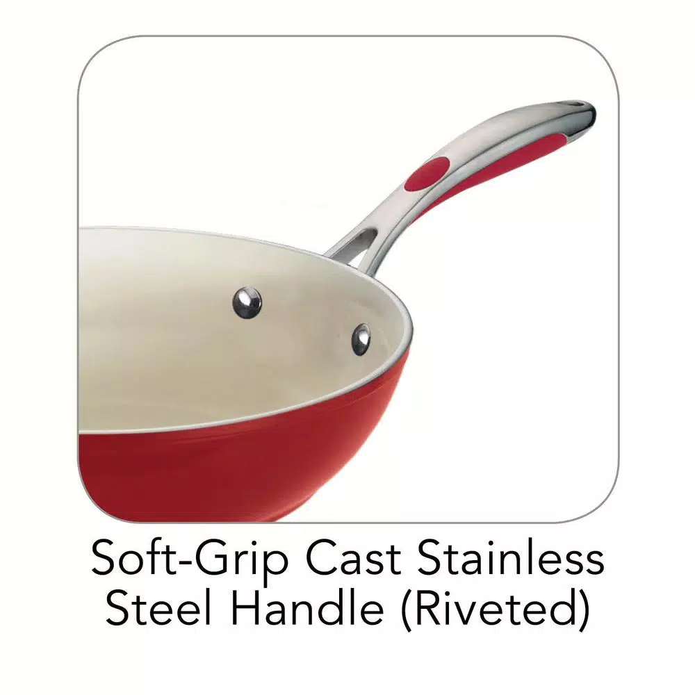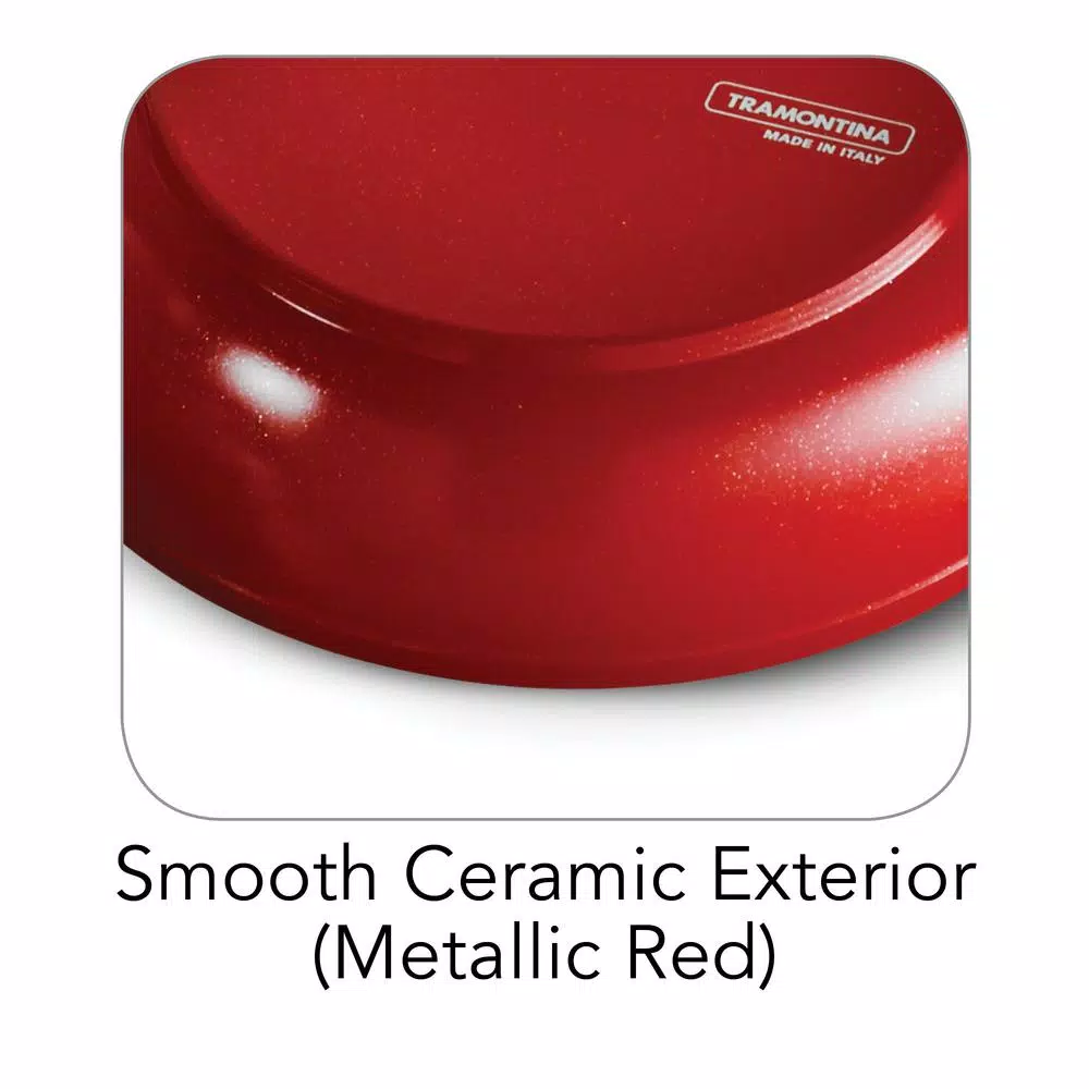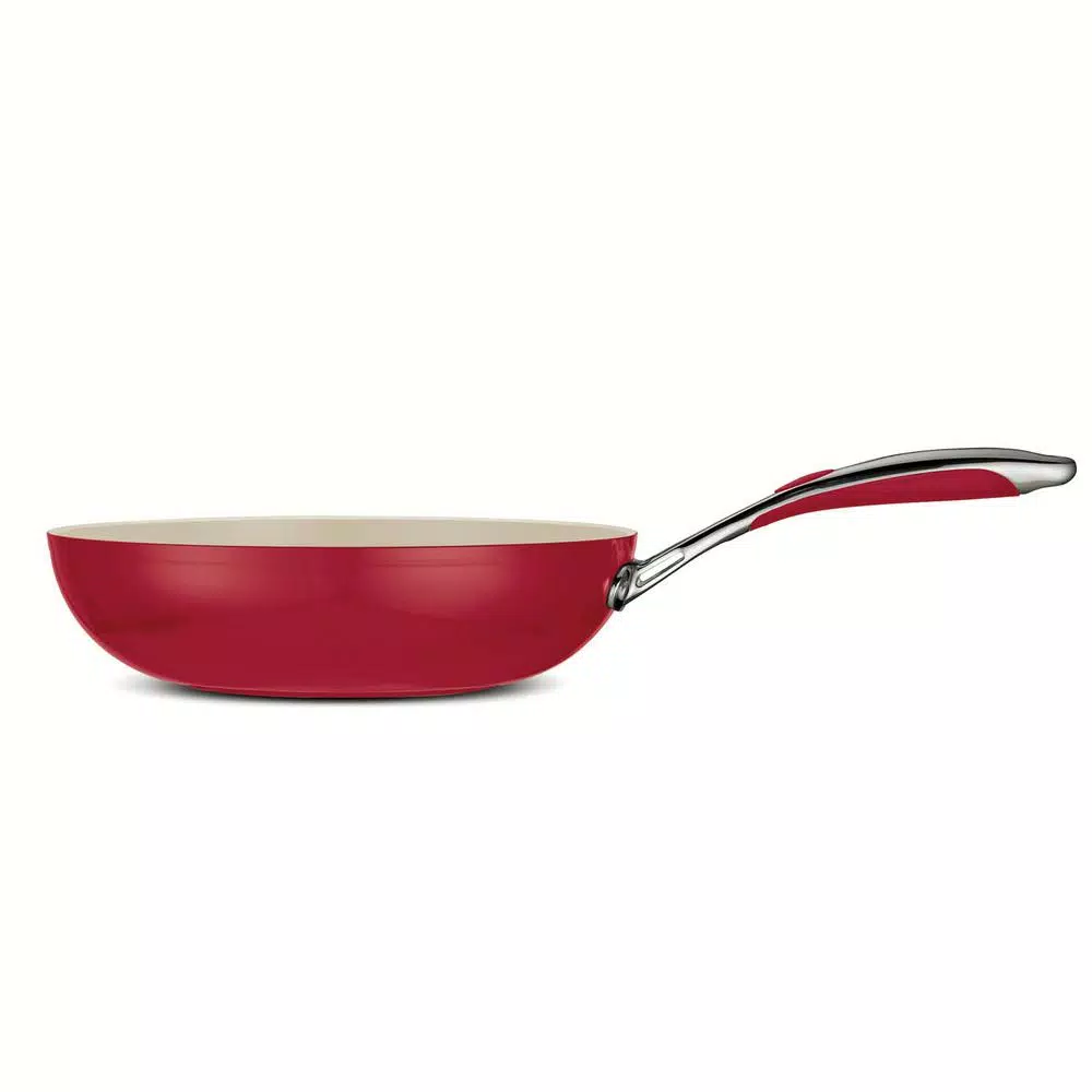 Tramontina Gourmet Ceramica Deluxe 11 in. Stir-Fry in metallic red is made of heavy-gauge aluminum and features a smooth ceramic interior and exterior, which provides simple healthy cooking, effortless cleaning and outstanding durability. The soft-grip, cast stainless steel handle ensure comfort and stability when handling cookware. Part of the TRAMONTINA GOURMET collection, which features premium products engineered and manufactured with the finest design, materials and workmanship.