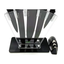 Set includes 12-stainless steel steak knives with beautiful pakka wood handles. A classic look to bring style to any current kitchen decor. Hand wash recommended.