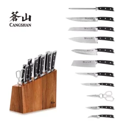 The S Series is sleek and slim, perfectly contrasting boldly angled lines and smooth curves, a story of dynamic balance and sharp focus. This is a fresh update to standard, simple done exceptionally well, a tool a chef can trust. Beautiful, robust yet slim the Cangshan Mountain Knife Block stands proudly displaying its curiously balanced asymmetrical shape. Rich, unique wood grain texture compliments and enhances the distinct design of the securely housed Cangshan Knife Set.