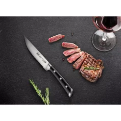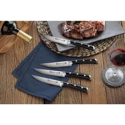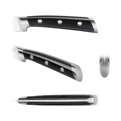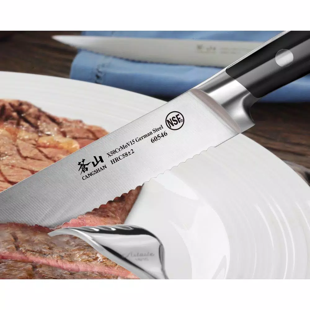 - Cangshan’s special serrated edges with precisely tapered blade from base to tip