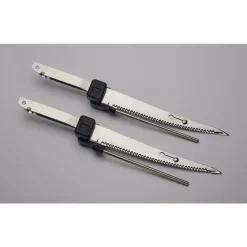- Kit contains electric knife, 2-sets of ss blades, 2-guide bars (silver skin, jerky) pliers with hooks, cut resistant gloves and carrying case