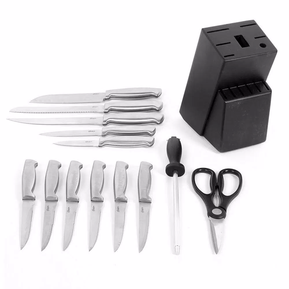 Complete your kitchen with these Baldwyn knives. They are precision-stamped for durability through the full length of the knife. This Oster cutlery also features high-quality, stain- and rust-resistant stainless steel blades.