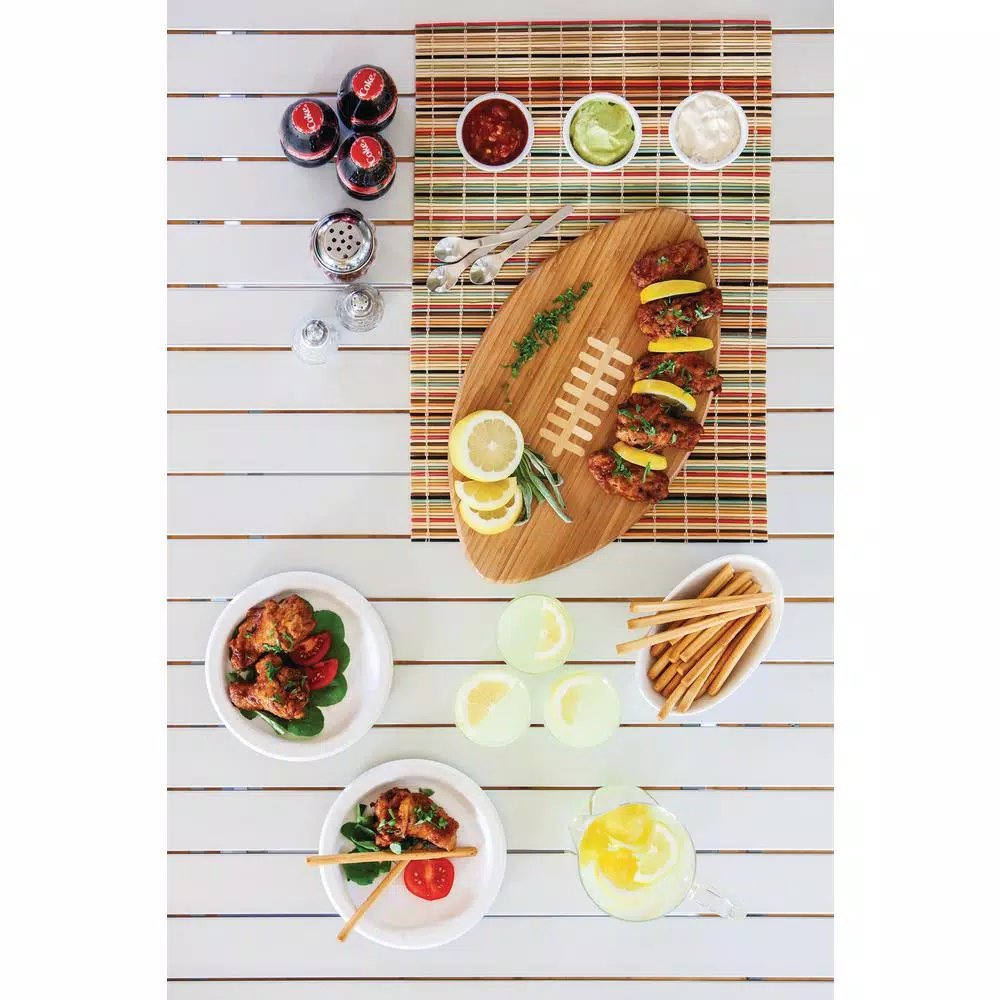 Show your love for football with Picnic Time Touchdown. Cutting Board, a bamboo-constructed pigskin-inspired cheese board that doubles as a serving platter. Use the blank underside for chopping and the “laced” topside for serving. Whether you’re tailgating or home gating, your friends and family will appreciate this cheese cutting board. First and ten.