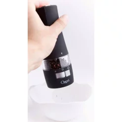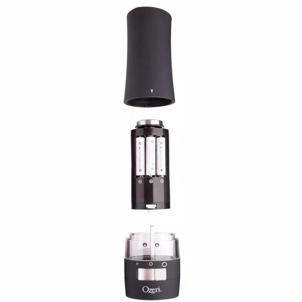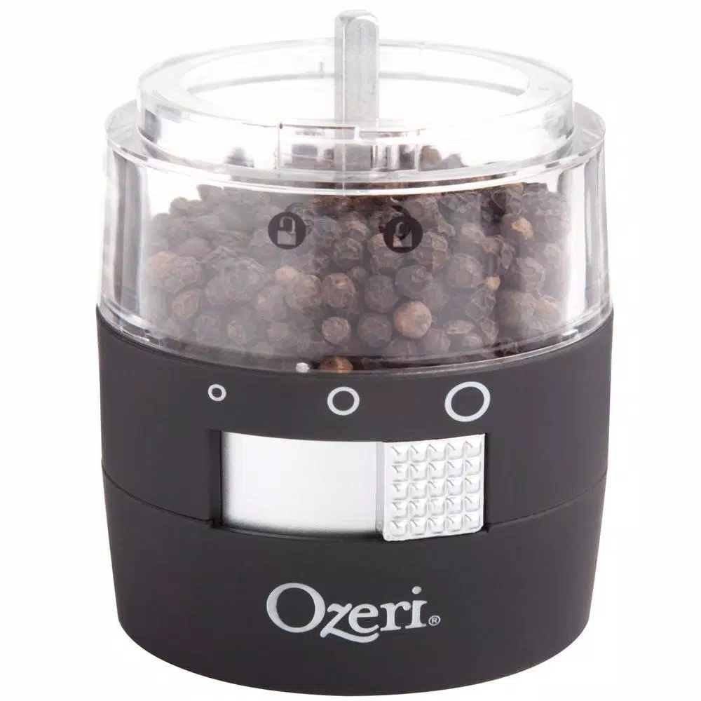 The most advanced Electric Pepper Grinder offered, the new Ozeri Savore features a new front-side adjustable ceramic grinding mechanism with 3 preset grind levels so that you never have to invert your grinder again. The Ozeri Savore Electric Grinder is the ultimate accompaniment to any dinning setting where a touch of fresh pepper (or salt) goes a long way. Designed to operate effortlessly, the new Savore combines a new front-side adjustable ceramic switch with a battery powered motor for push-button effortless dispensing of pepper (or salt). Marketed almost exclusively by word of mouth, the battery powered Savore consistently wins applause with its ability to grind peppercorns, salt and spices. The Savore Electric Grinder by Ozeri also boasts an ultra-soft non-slip grip with a finger-print resistant coating. The Savore requires no assembly, and runs on 6 AAA batteries (not included).