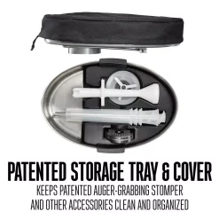 - Includes an auger grabbing stomper for simple disassembly and easy cleanup