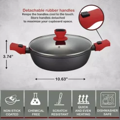 Bakeware AMERCOOK 10 In. Round 4.5 Litre Low Casserole Pan And Glass Lid With Detachable Handle